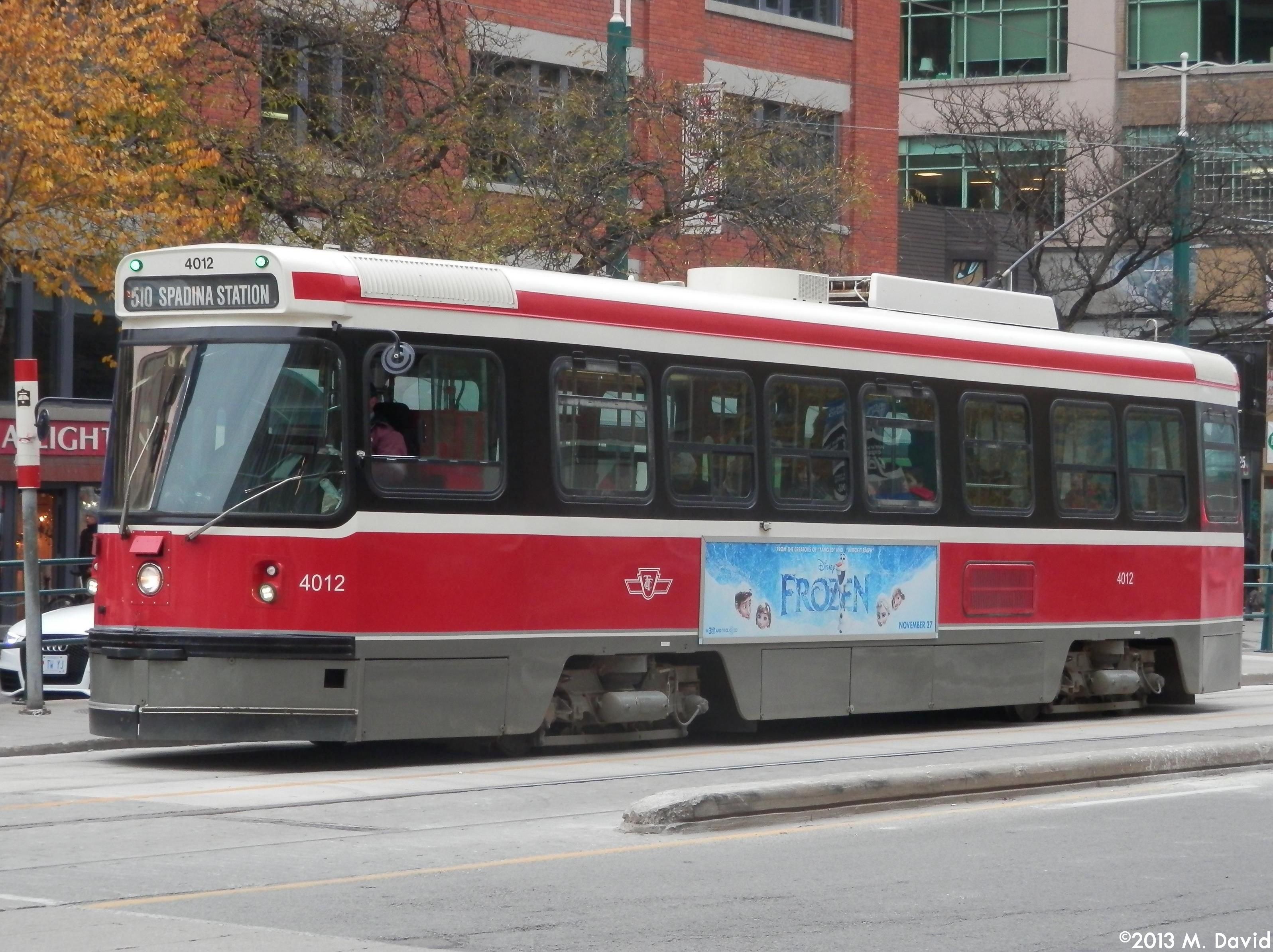 871 KB | TTC 4011, a 1978-81 Hawker Siddeley CLRV streetcar, is seen working route 510 Spadina at the intersection of Spadina Ave. and Adelaide St. W. in downtown Toronto. | 1 |