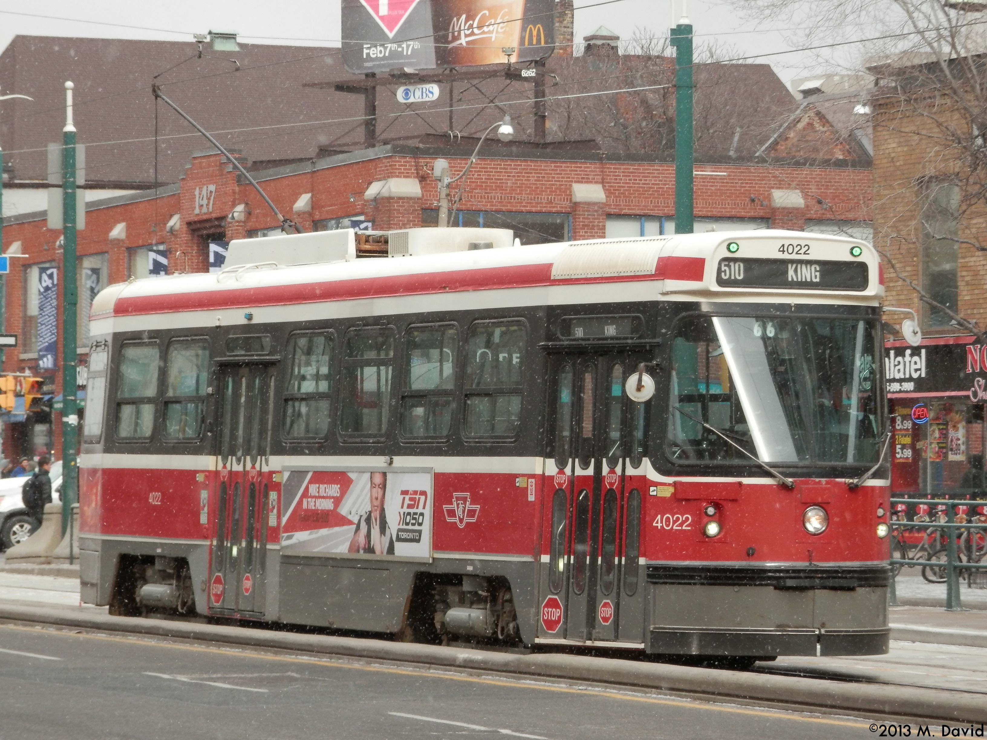 949 KB | TTC 4022, a 1978-81 UTDC/Hawker Siddeley CLRV streetcar, is seen working route 510 Spadina on Spadina Ave. in downtown Toronto. | 1 |
