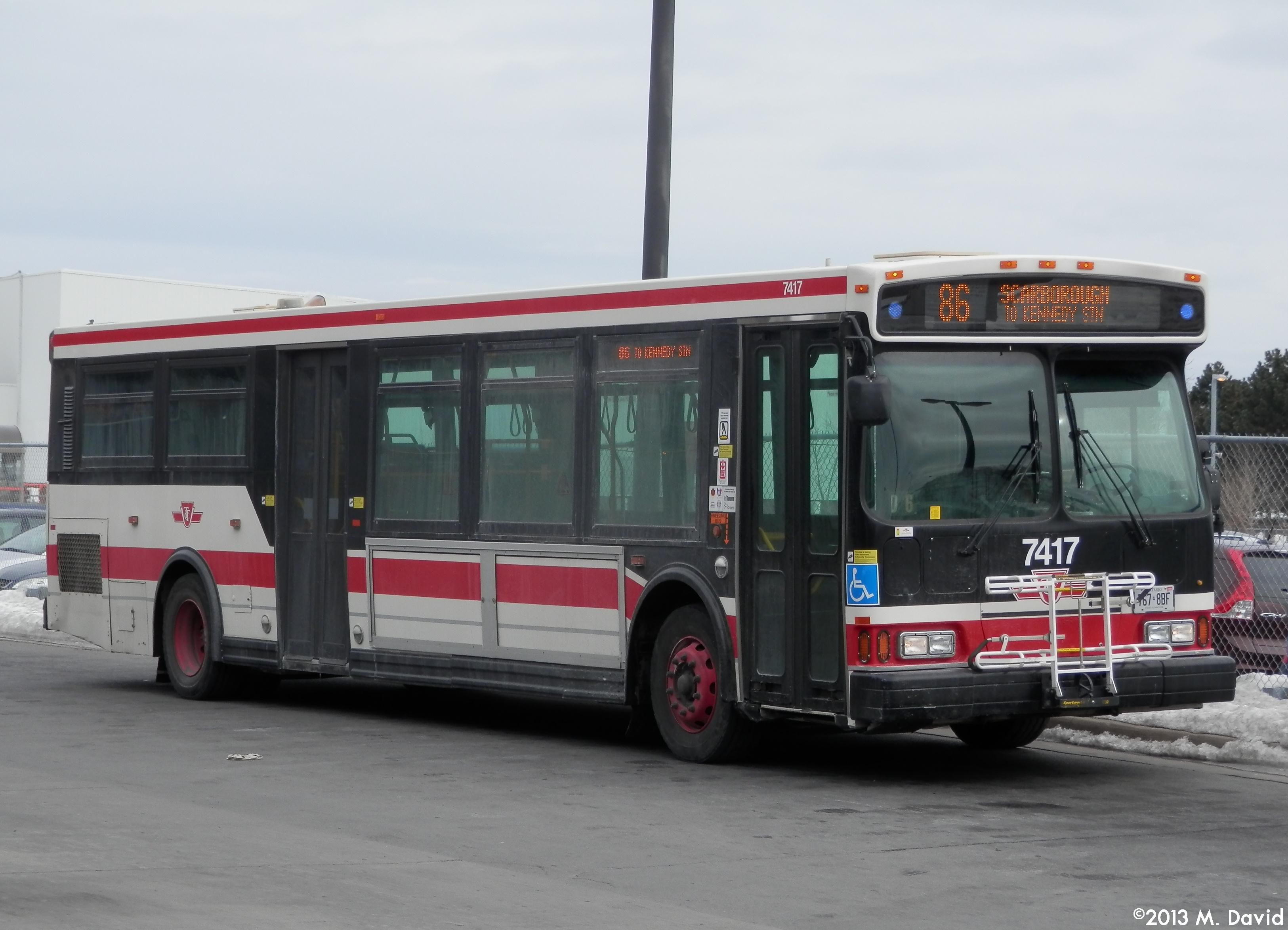 520 KB | TTC 7417, a 2002 Orion VII, is seen laying over on route 86 Scarborough at Kennedy Station. | 1 |
