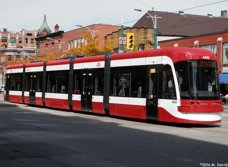 4400 and sister unit 4401 were built and delivered in 2012, and underwent extensive operator training to help operators adapt to the new system. On August 31, 2014, 4400 and 4403 made their official debut on route 510 Spadina.