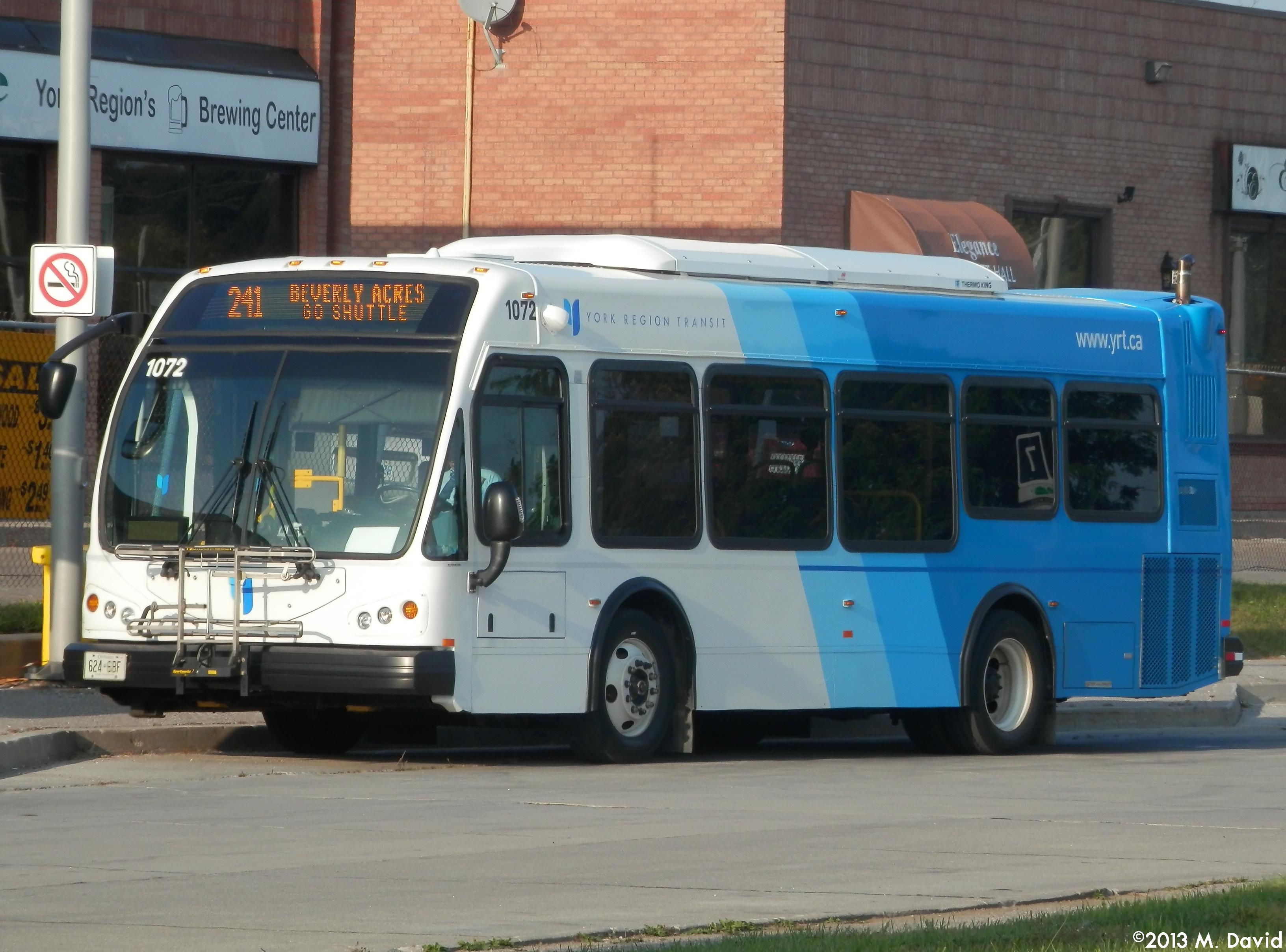 YRT 1072, a 2010 ElDorado E-Z II BRT, is seen waiting for passengers on route 241 Beverly Acres GO Shuttle at Richmond Hill GO Station.