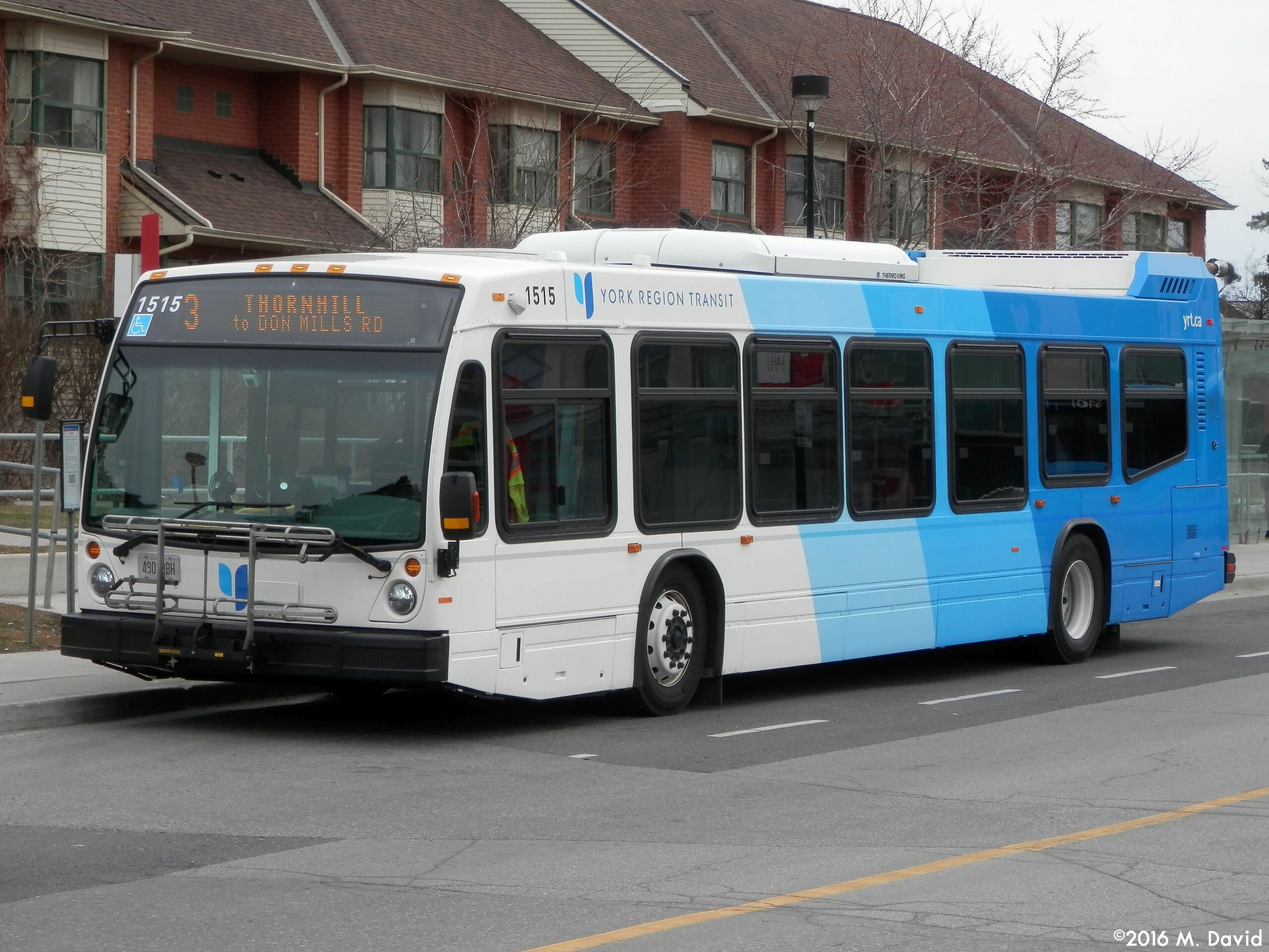 YRT 1515, a 2015 Nova Bus LFS, is seen waiting for passengers on route 3 Thornhill at York University.