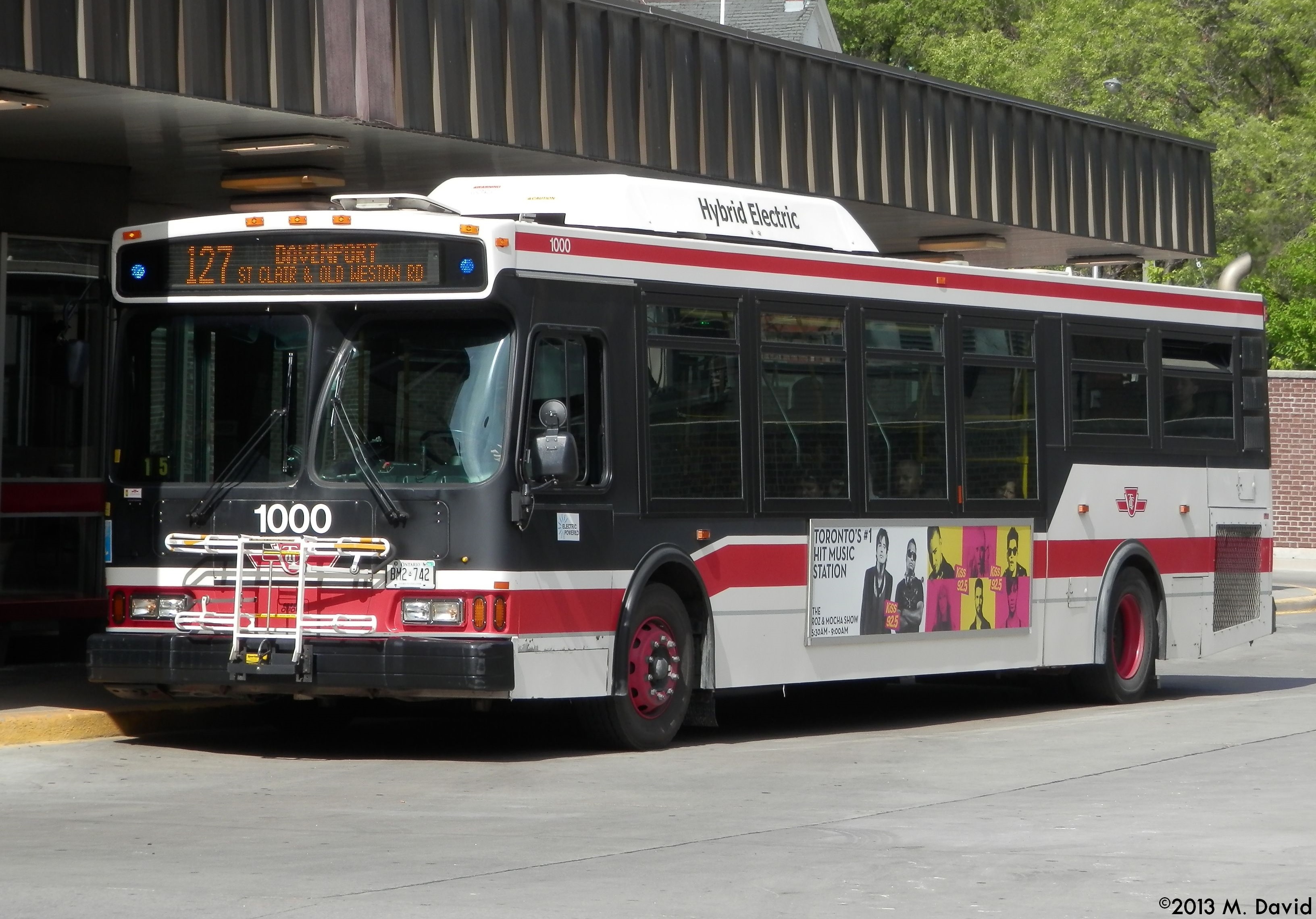 1.27 MB | TTC 1000, a 2006 Orion VII HEV, is seen waiting for passengers on route 127 Davenport at Spadina Station. | 1 |