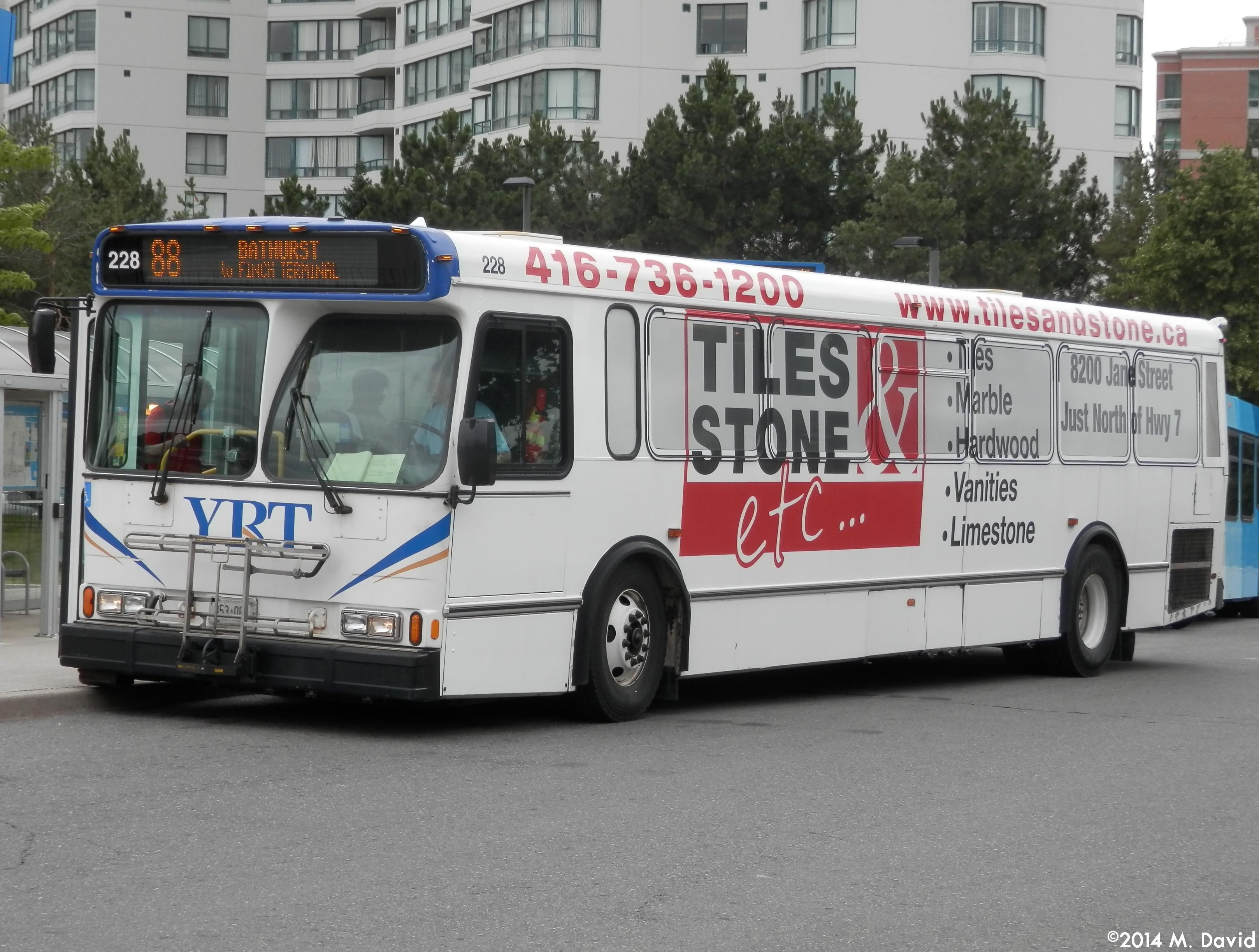 837 KB | YRT 228, a 2002 Orion V, is seen waiting for passengers on route 88 Bathurst at Promenade Terminal. This bus is still in the old YRT livery, is one of several ex-GO Transit units purchased by YRT, and features a full wrap for Tiles & Stone Etc. | 1 |