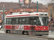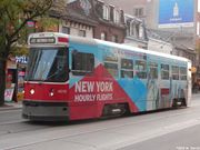 833 KB | TTC 4019, a 1978-81 UTDC/Hawker Siddeley CLRV streetcar, is seen working route 502 Downtowner on Queen St. W. in downtown Toronto. This streetcar features a full wrap for Air Canada. | 1 |